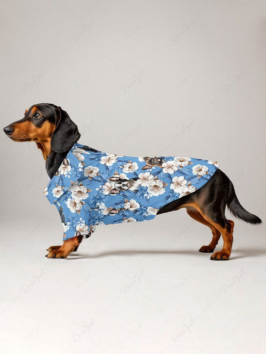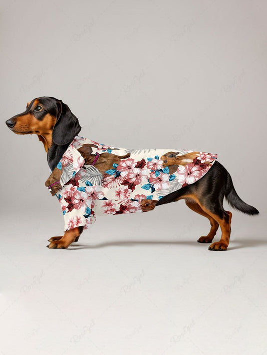 Pet's Hibiscus Floral Tropical Leaves Dog Printed Hawaii Button Shirt