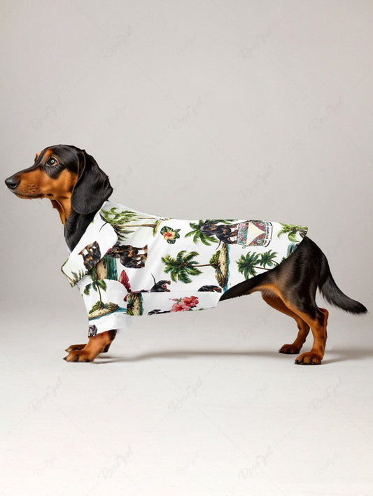 Pet's Dogs Coconut Tree Flowers Printed Hawaii Shirt