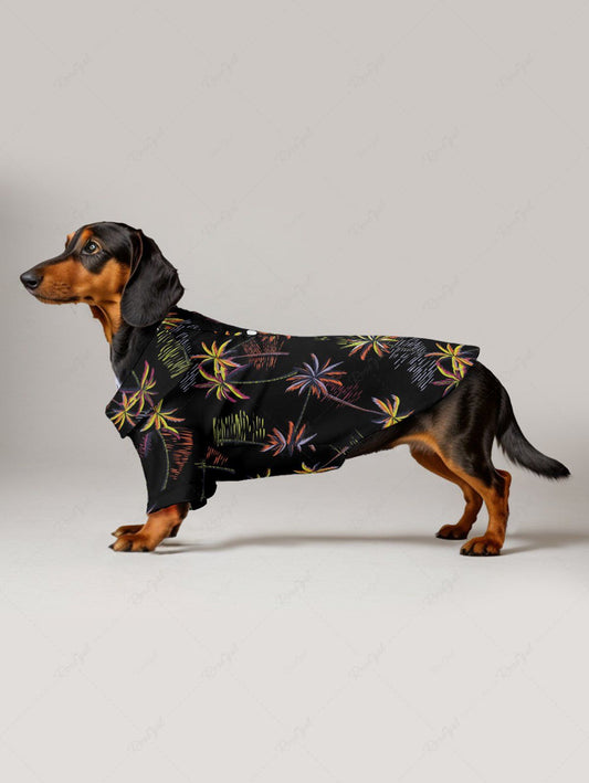 Pet's Coconut Tree Dog Tropical Leaves Floral Printed Hawaii Button Shirt