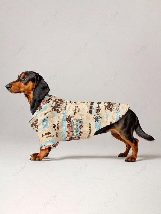 Pet's Dogs Coconut Tree Bus Sailboat Umbrella Printed Hawaii Shirt