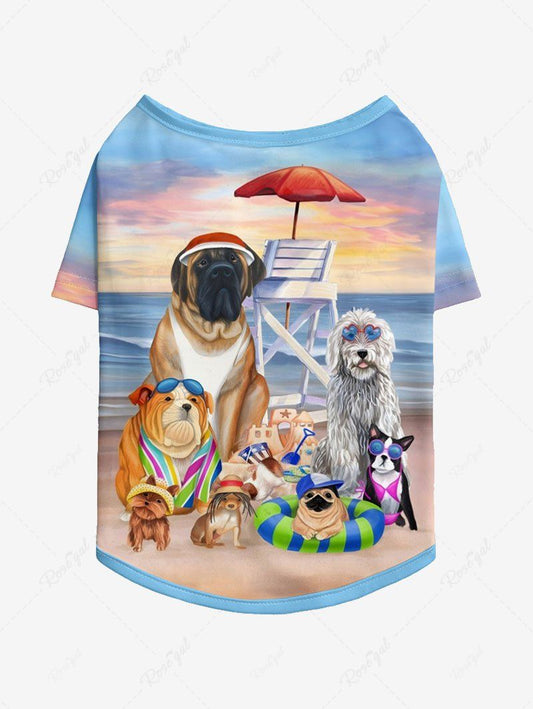 Pet's Cute Dog Beach Sea Ombre Sky Printed Hawaii T-shirt