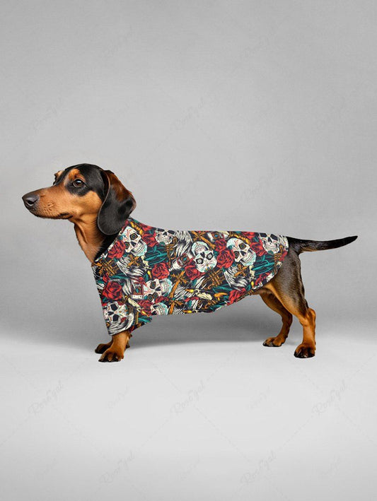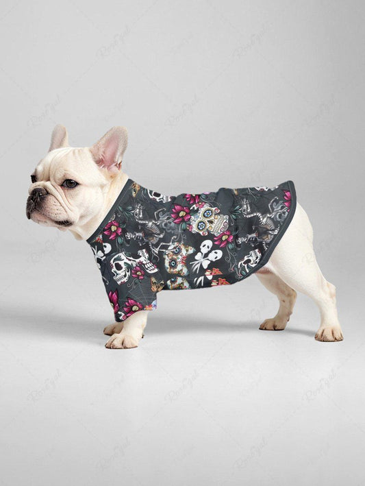 Pet's Lotus Flowers Skulls Skeleton Butterfly Printed T-shirt