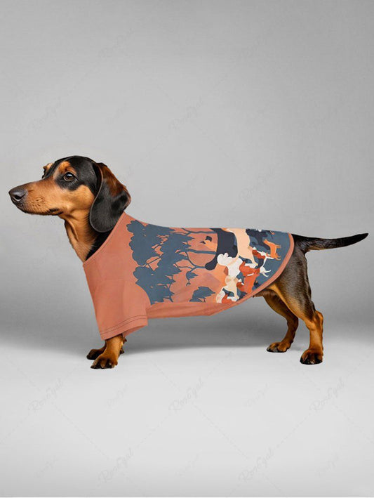 Pet's Dogs Tree Colorblock Printed T-shirt