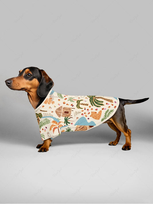 Pet's Coconut Tree River Floral Straw House Printed Hawaii T-shirt