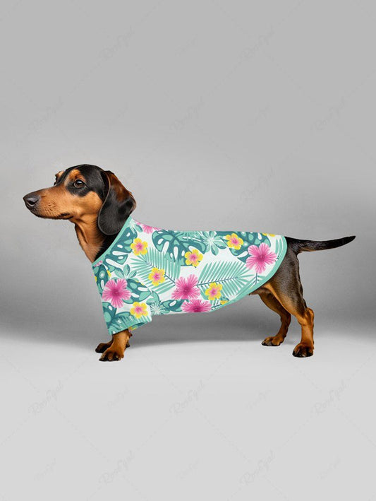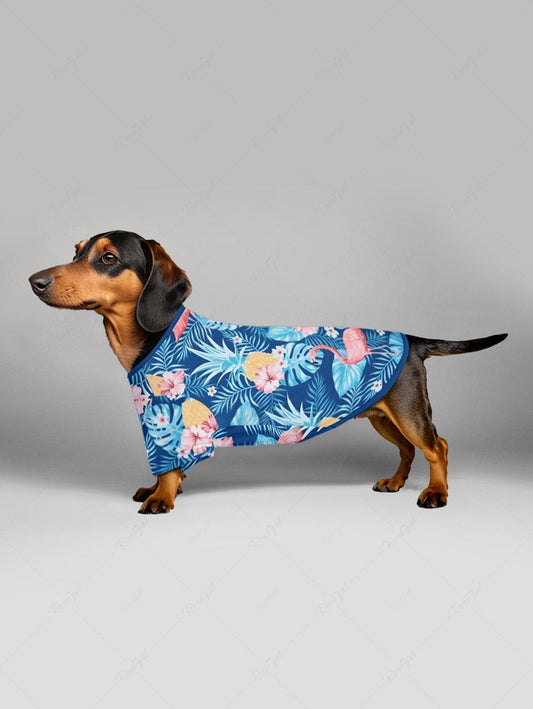 Pet's Flamingo Tropical Leaf Hbiscus Flower Printed Hawaii T-shirt