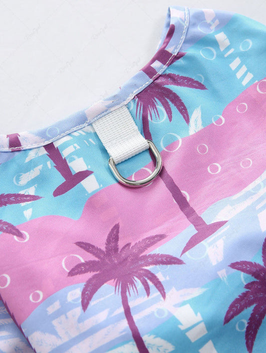 Pet's Tropical Coconut Tree Bubble Colorblock Printed Hawaii T-shirt