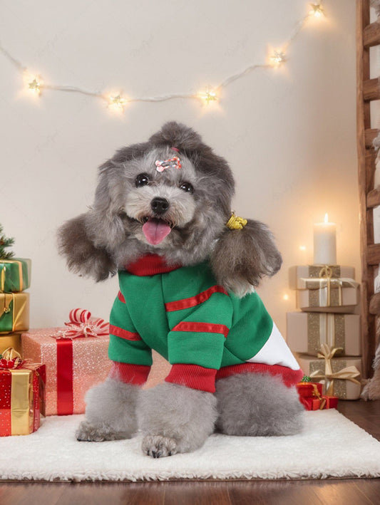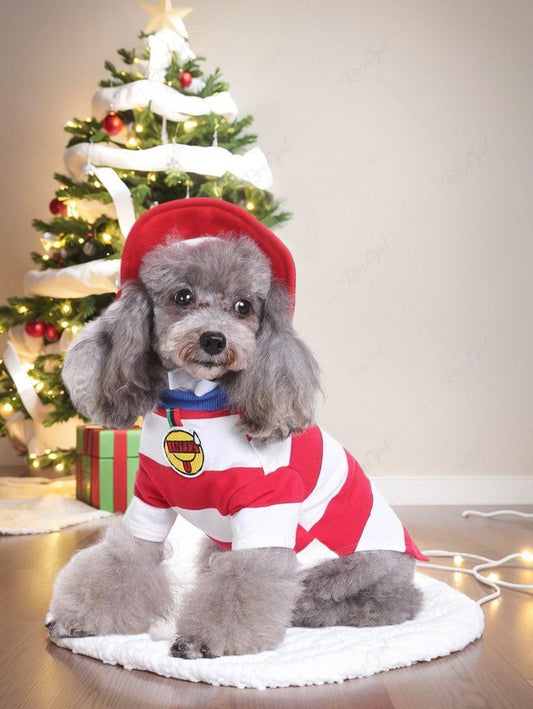 Pet's Christmas Stripes Printed T-shirt With Cap