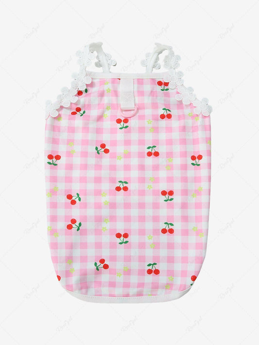 Pet's Cherry Plaid Print Flower Applique Cute Tank Top