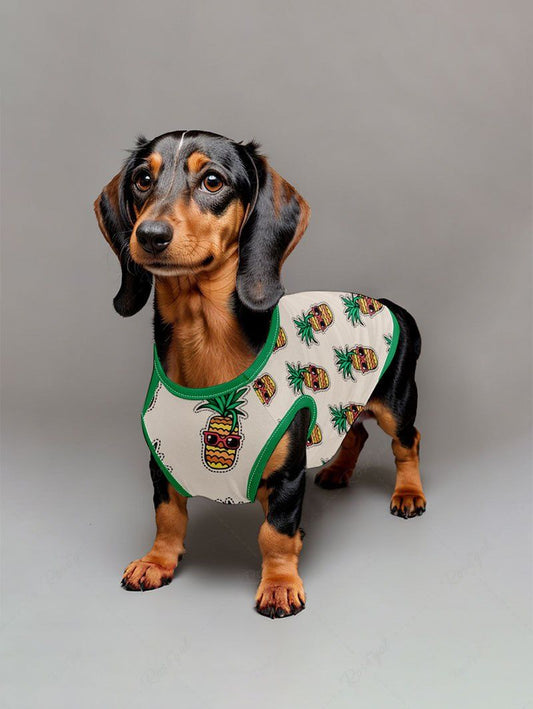 Pet's Cartoon Pineapple Printed Hawaii Contrast Piping Tank Top
