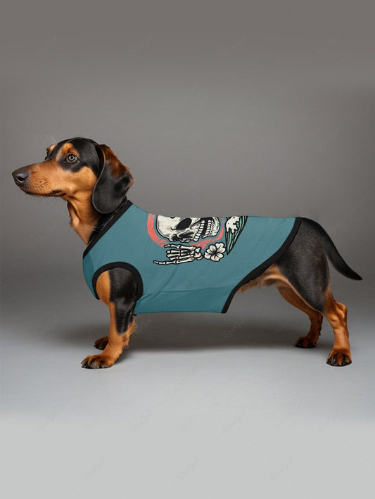 Pet's Skull Skeleton Floral Sea Wave Printed Hawaii Tank Top