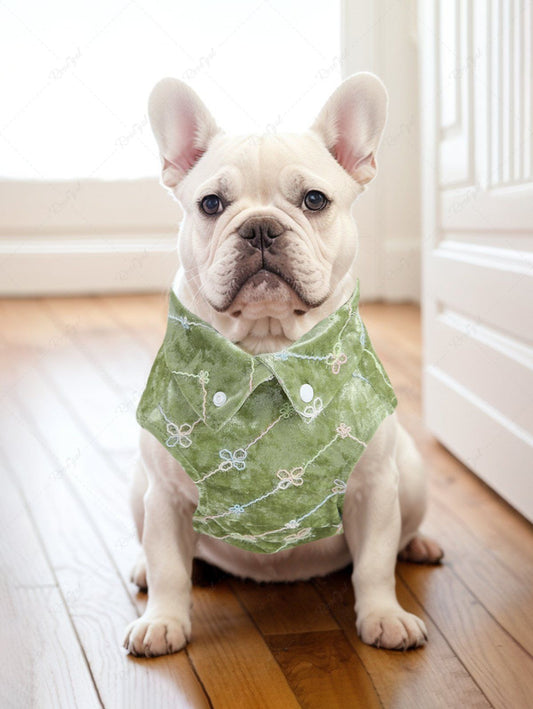Pet's Turn-down Collar Button Floral Jacquard D-Ring Velvet Tank Top