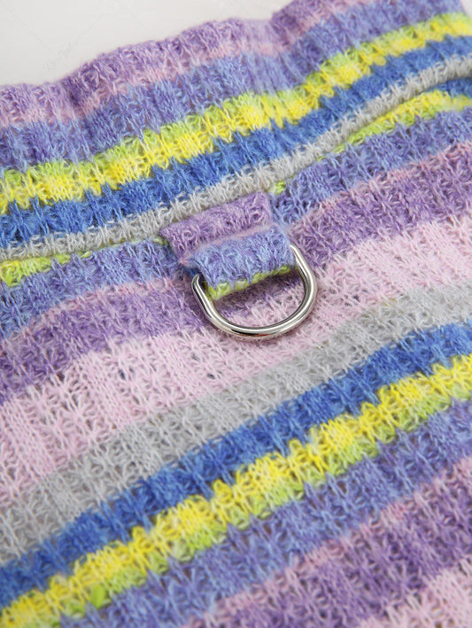 Pet's Colorful Striped Button Knit D-Ring Tank Top