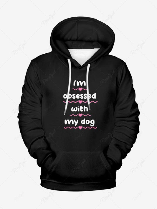Plus Size Letters Heart Wavy Lines Printed Pocket Drawstring Hoodie