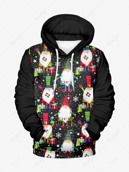 Plus Size Christmas Santa Claus Gift Box Star Snowflake Printed Pocket Drawstring Hoodie