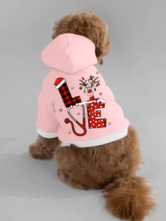 Christmas Animal Heart Hat Print Hoodie Dog And Owner Matching Outfits