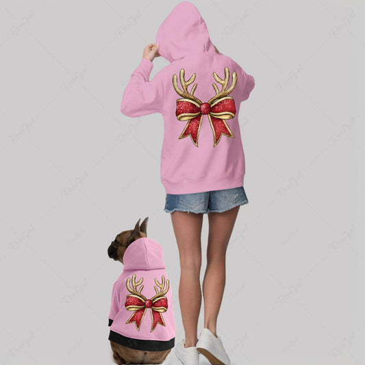 Christmas Elk Bowknot Light Letters Print Hoodie Dog And Owner Matching Outfits