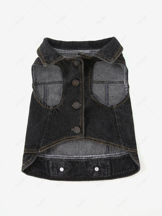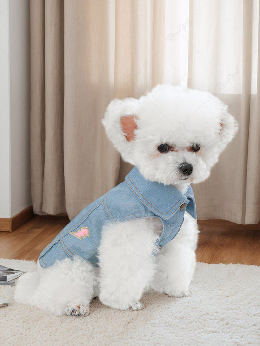 Pet's Letter Star Lightning Jacquard Embroidered Topstitching Button Denim Vest