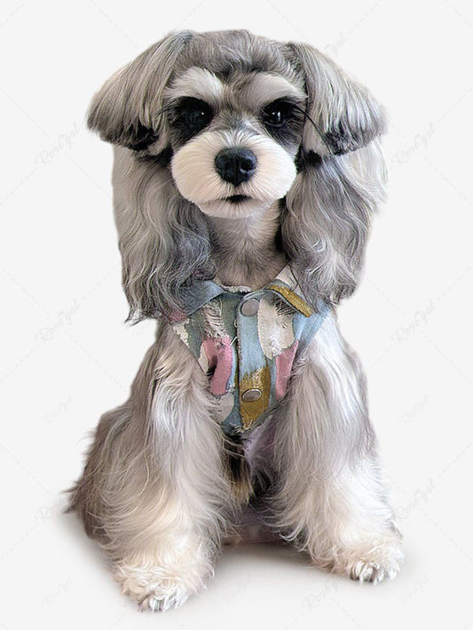 Pet's 100% Cotton Geometric Letter Printed Faded Button Topstitching Denim Vest
