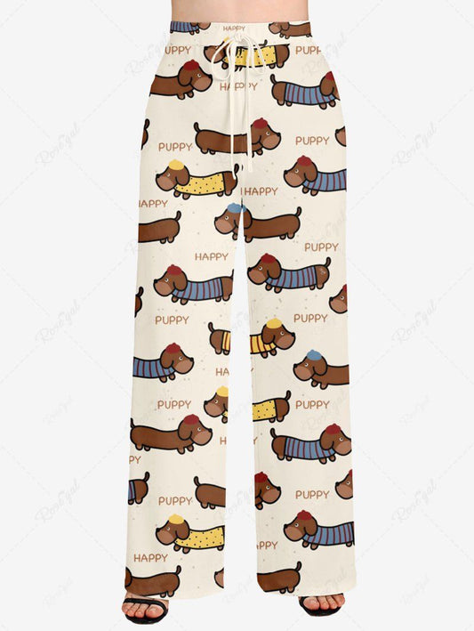 Plus Size Puppy Dod Letters Printed Drawstring Wide Leg Pants
