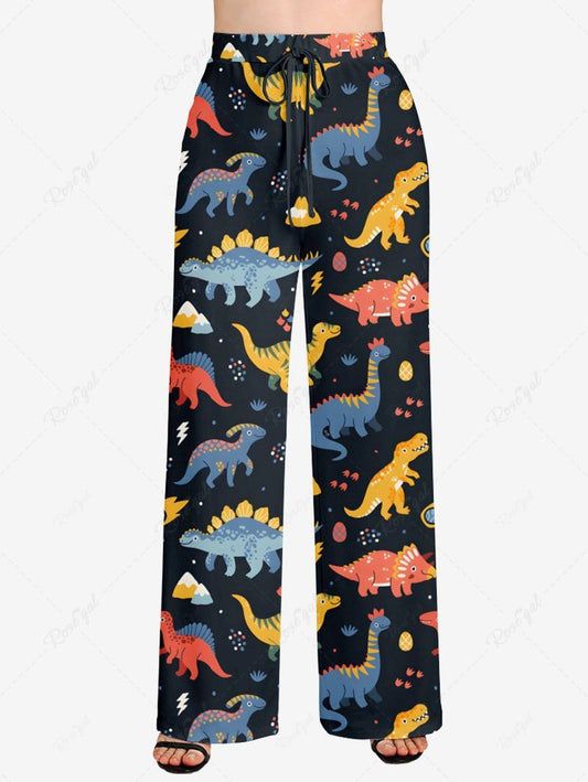 Plus Size Dinosaur Printed Drawstring Wide Leg Pants