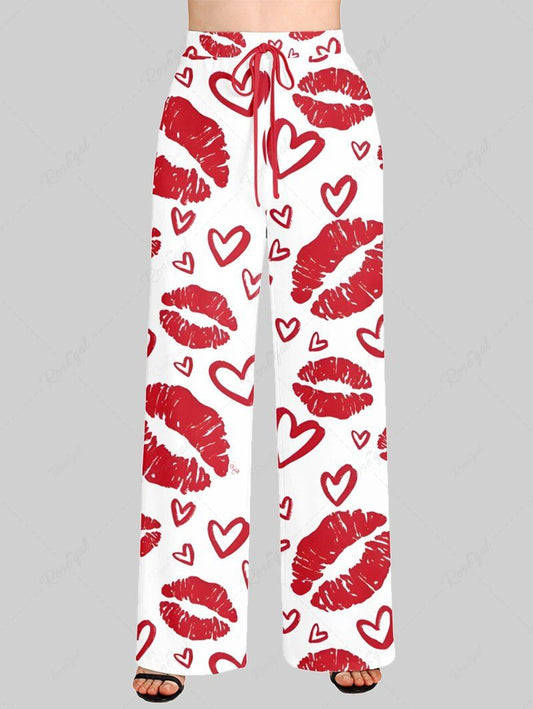 Plus Size Heart Lips Printed Drawstring Wide Leg Pants