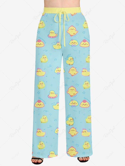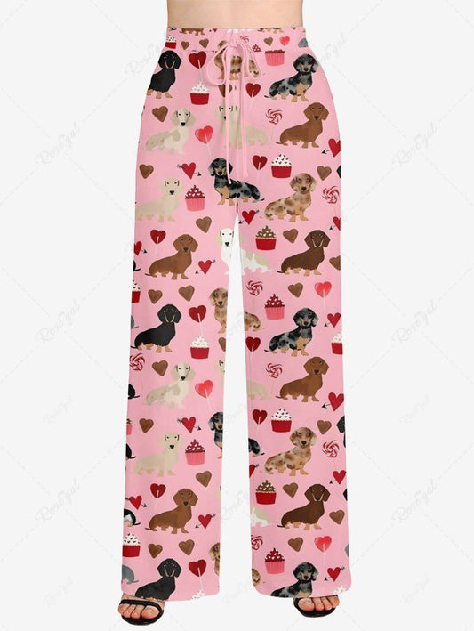 Plus Size Dog Heart Cake Printed Drawstring Wide Leg Pants
