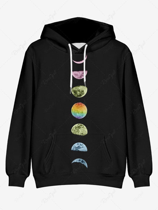 Plus Size Ombre Moon Planet Printed Pocket Drawstring Pullover Long Sleeves Hoodie