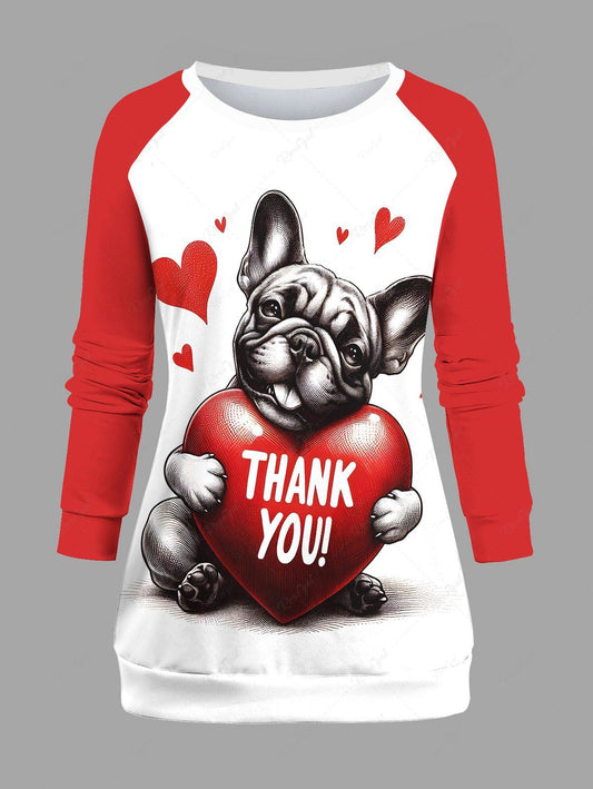 Plus Size Dog Heart Printed Raglan Sleeve Sweatshirt