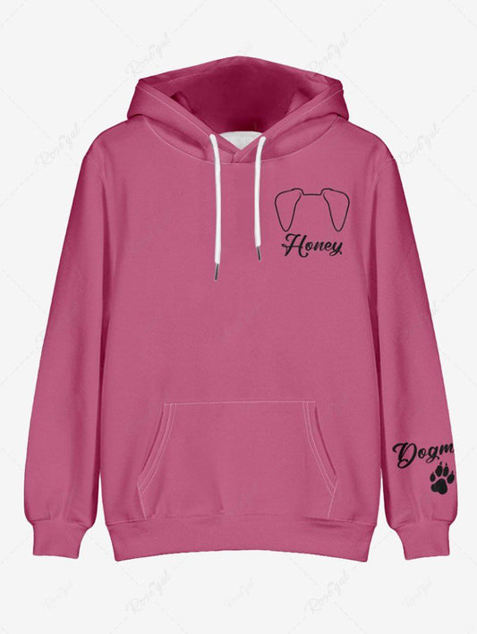 Plus Size Dog Honey Letters Printed Pocket Drawstring Pullover Long Sleeves Hoodie