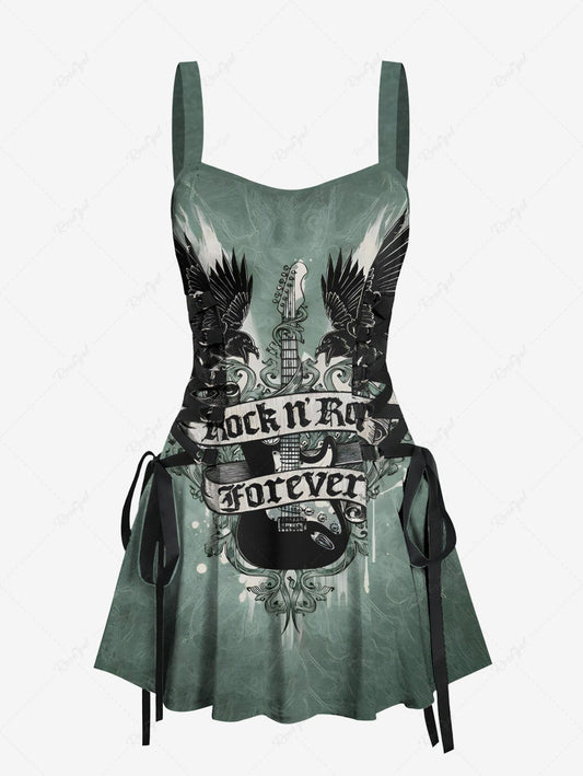 Music Festival Eagle Guitar Letters Printed Lace Up Tank Dress