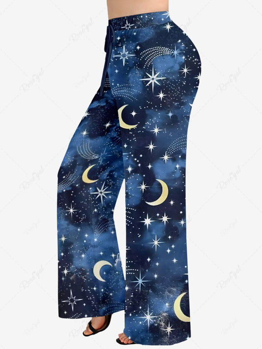 Plus Size Galaxy Star Moon Tie Dye Printed Wide Leg Pants