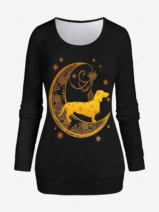 Moon Star Floral Dog Printed Pullover Long Sleeves T-shirt