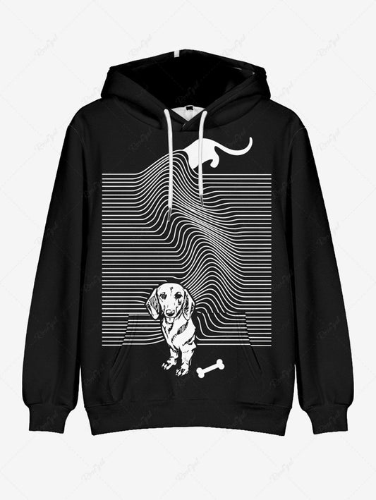 Plus Size Dog Striped Carpet Bone Printed Pocket Drawstring Pullover Long Sleeves Hoodie