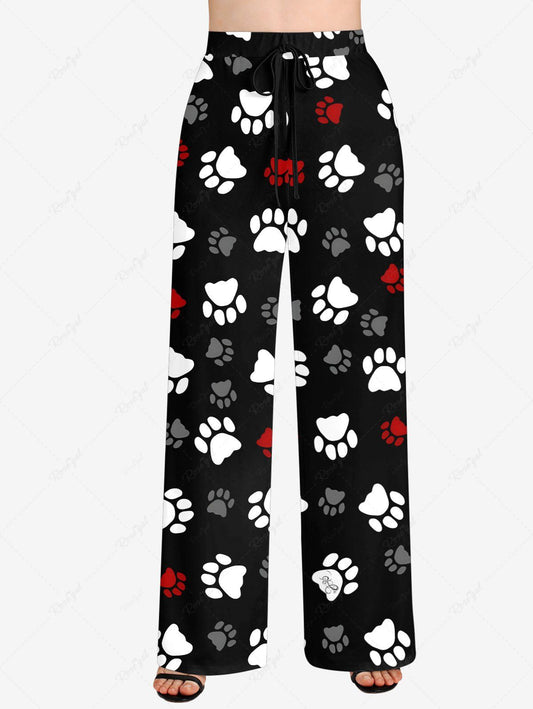 Plus Size Foot Printed Drawstring Wide Leg Pants
