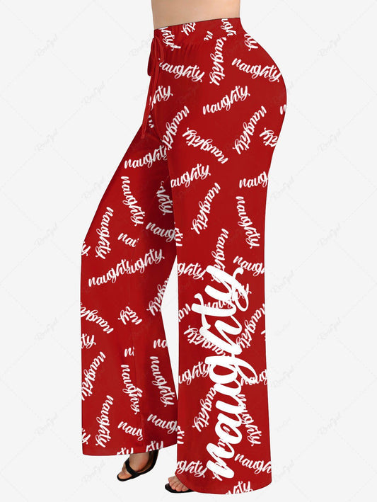 Plus Size Christmas Santa Claus Snowflake Elk Candy Gingerbread Printed Drawstring Wide Leg Pants
