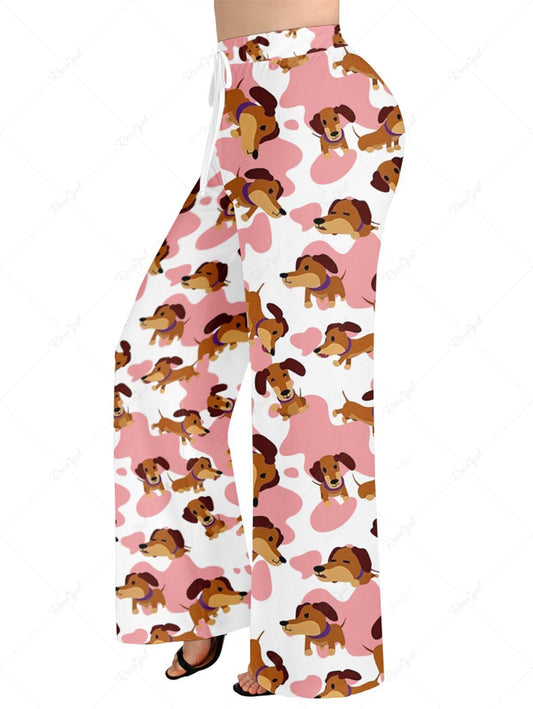 Plus Size Cute Dog Spotted Print Drawstring Wide Leg Pants