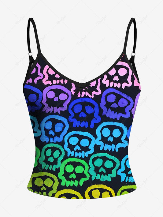 Colorful Ombre Skull Print Halloween Bowknot Cami Top and Drawstring Shorts Pajama Set