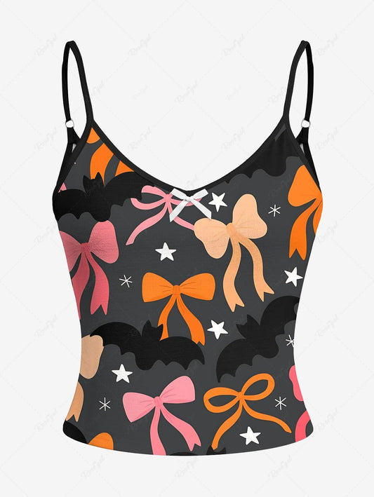 Bowknot Bat Stars Print Halloween Cami Top and Drawstring Shorts Pajama Set