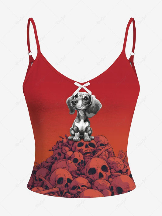 Skull Dog Dip Dye Ombre Print Cami Top and Drawstring Shorts Pajama Set