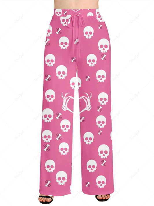 Plus Size Skulls Skeleton Claw Bone Print Drawstring Wide Leg Pants