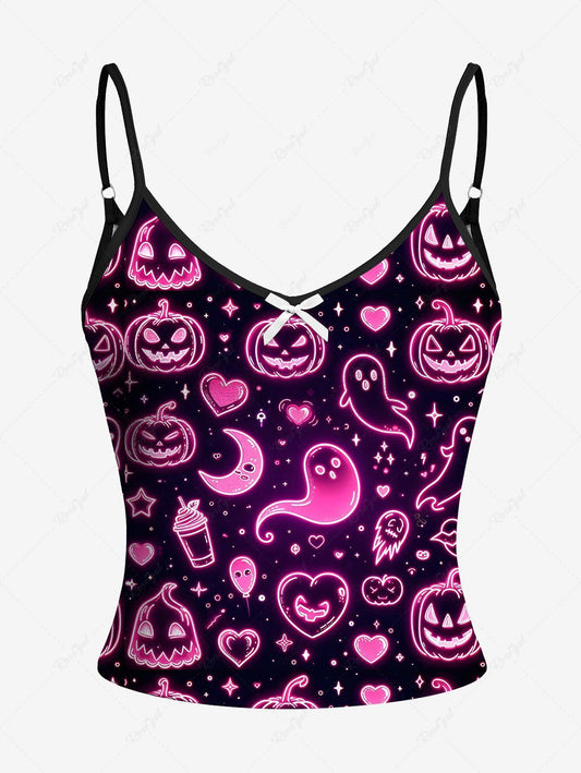 Halloween Pumpkin Ghost Moon Star Heart Print Cami Top And Boyshorts Pajama Set