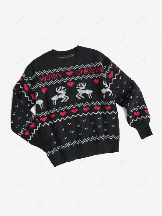 Christmas Elk Heart Letters Zig Zag Printed Sweater