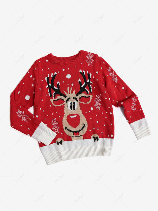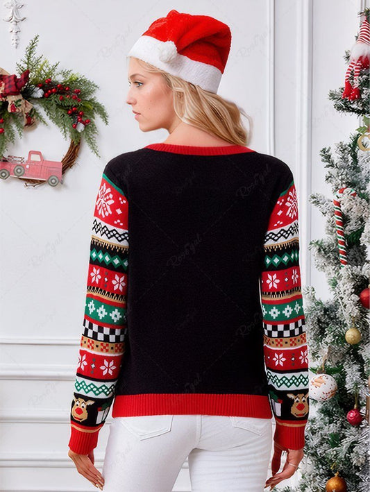 Christmas Snowflake Elk Colorblock Printed Sweater