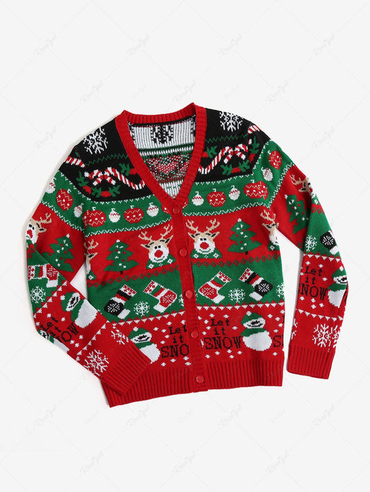 Christmas Tree Ball Elk Snowman Candy Printed Buttons Cardigan