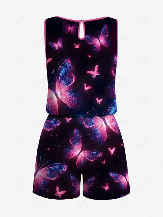 Plus Size Glitter Butterfly Galaxy Print Drawstring Pocket Romper