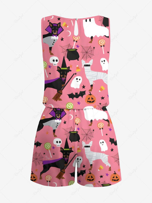 Plus Size Dog Bat Pumpkin Ghost Spider Web Print Halloween Drawstring Pocket Romper