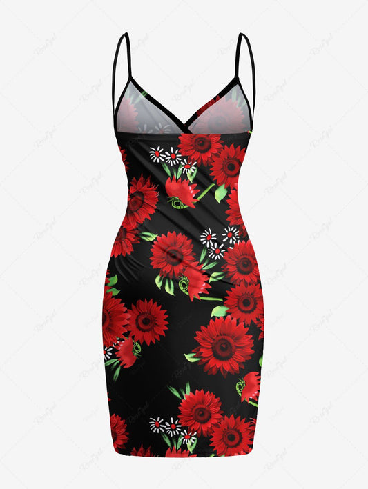 Plus Size Flower Branch Print Hawaii Surplice A Line Cami Dress