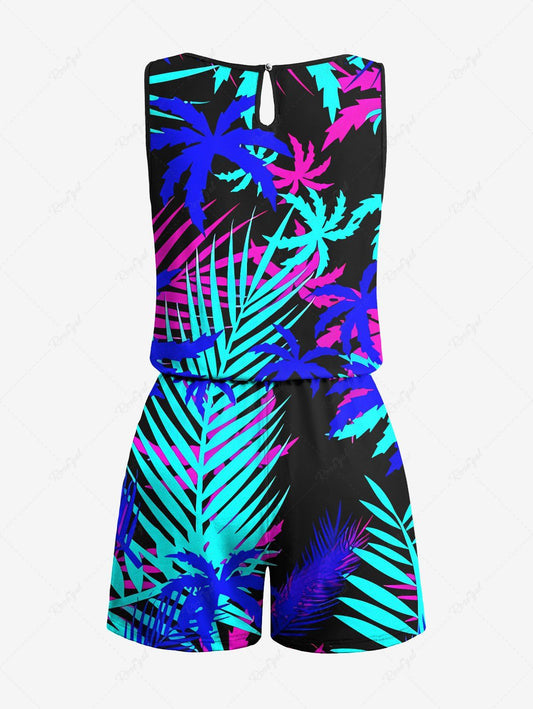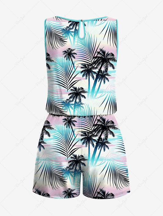 Plus Size Tropical Leaf Coconut Tree Print Cinched Hawaii Romper