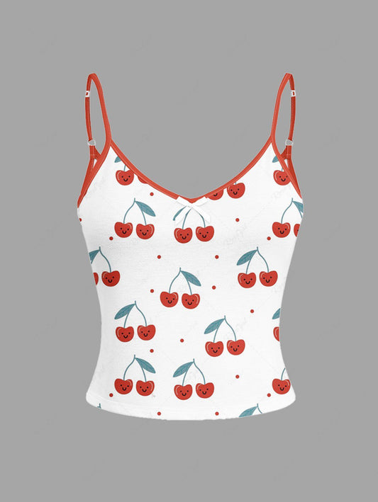 Cherry Smile Print Cami Top and Shorts Pajama Set