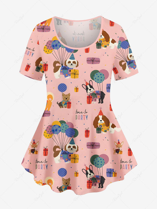 Plus Size Colorful Cute Dog Balloons Gift Printed Women T-shirt
